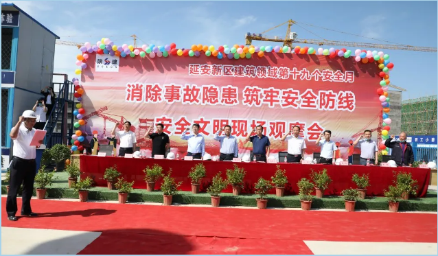 5月29日,由延安市新區(qū)住房和城市建設(shè)局主辦的第19個安全生產(chǎn)月宣誓暨“消除事故隱患 筑牢安全防線”安全文明現(xiàn)場觀摩會在陜建十三建公司清華大學(xué)附屬中學(xué)延安學(xué)校項目舉行。