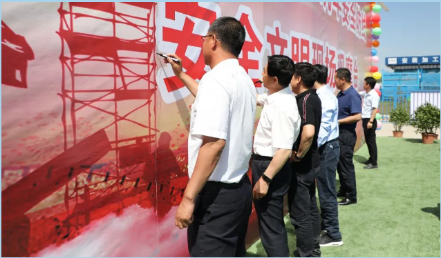 全體人員進(jìn)行安全承諾宣誓并在背景墻簽字承諾