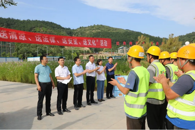 8月10日,延安市政協(xié)副主席、市總工會(huì)黨組書(shū)記、主席黑樹(shù)林一行來(lái)到陜建十三建公司南泥灣紅色文化小鎮(zhèn)項(xiàng)目慰問(wèn)項(xiàng)目一線建設(shè)者,為他們送去茶葉、蜂蜜、綠豆、小米等防暑降溫物品。市總工會(huì)副主席、女職委主任鄭艷霞,南泥灣開(kāi)發(fā)區(qū)黨工委副書(shū)記折克銀,市總工會(huì)辦公室副主任、困難職工幫扶中心主任惠瑞國(guó),市總工會(huì)辦公室副主任、宣教部負(fù)責(zé)人康靖華,陜建十三建公司紀(jì)委書(shū)記、工會(huì)主席張軍祥出席活動(dòng)。