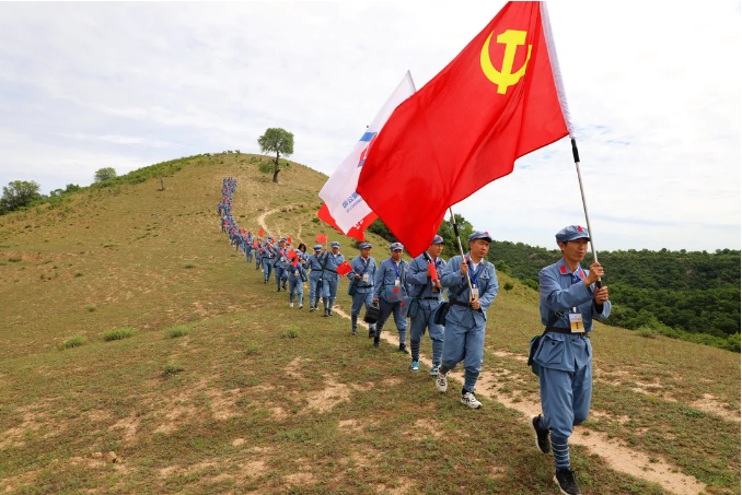 隨后,全體人員從甘泉縣圪嶗村出發(fā),沿著當(dāng)年紅軍走過的足跡,重走長征路,徒步6.8公里,到達(dá)九牛塔段。途中,全體人員學(xué)唱了《三大紀(jì)律八項注意》紅色歌曲,吟誦了《七律·長征》和《沁園春·雪》,聆聽了紅軍長征光輝事跡,體驗紅軍長征的艱辛,感受紅軍不畏艱險,英勇頑強(qiáng)的革命精神。