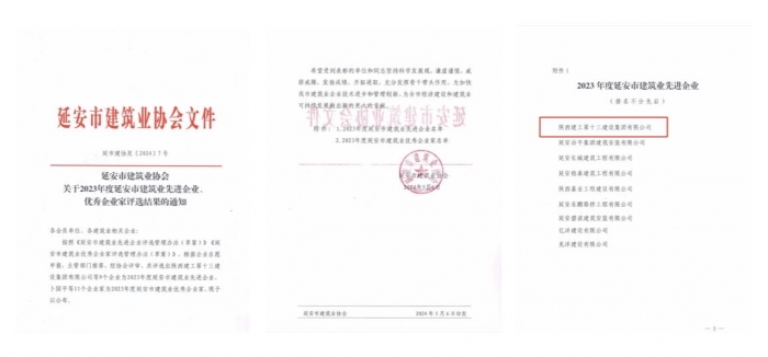 近日,延安市建筑業(yè)協(xié)會公布了2023年度延安市建筑業(yè)先進企業(yè)、優(yōu)秀企業(yè)家評選結(jié)果,陜西建工第十三建設集團有限公司被評為2023年度延安市建筑業(yè)先進企業(yè);集團總工程師、新型建材公司黨支部書記、董事長王弘起被評為優(yōu)秀企業(yè)家。